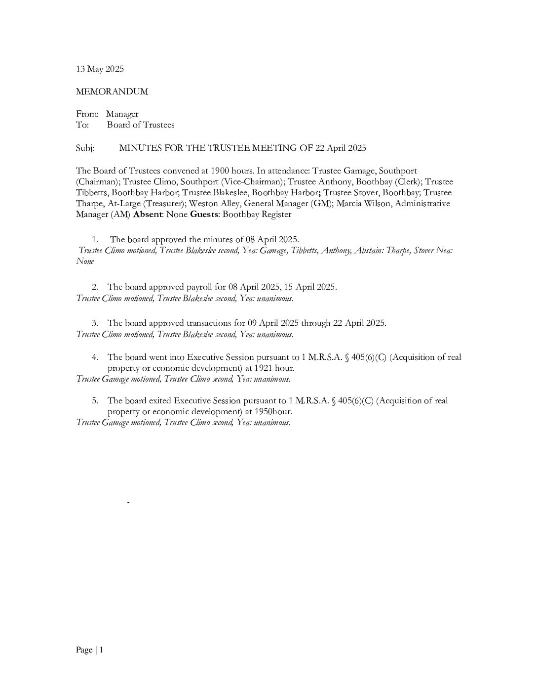 April 22nd, 2025 — Meeting Minutes