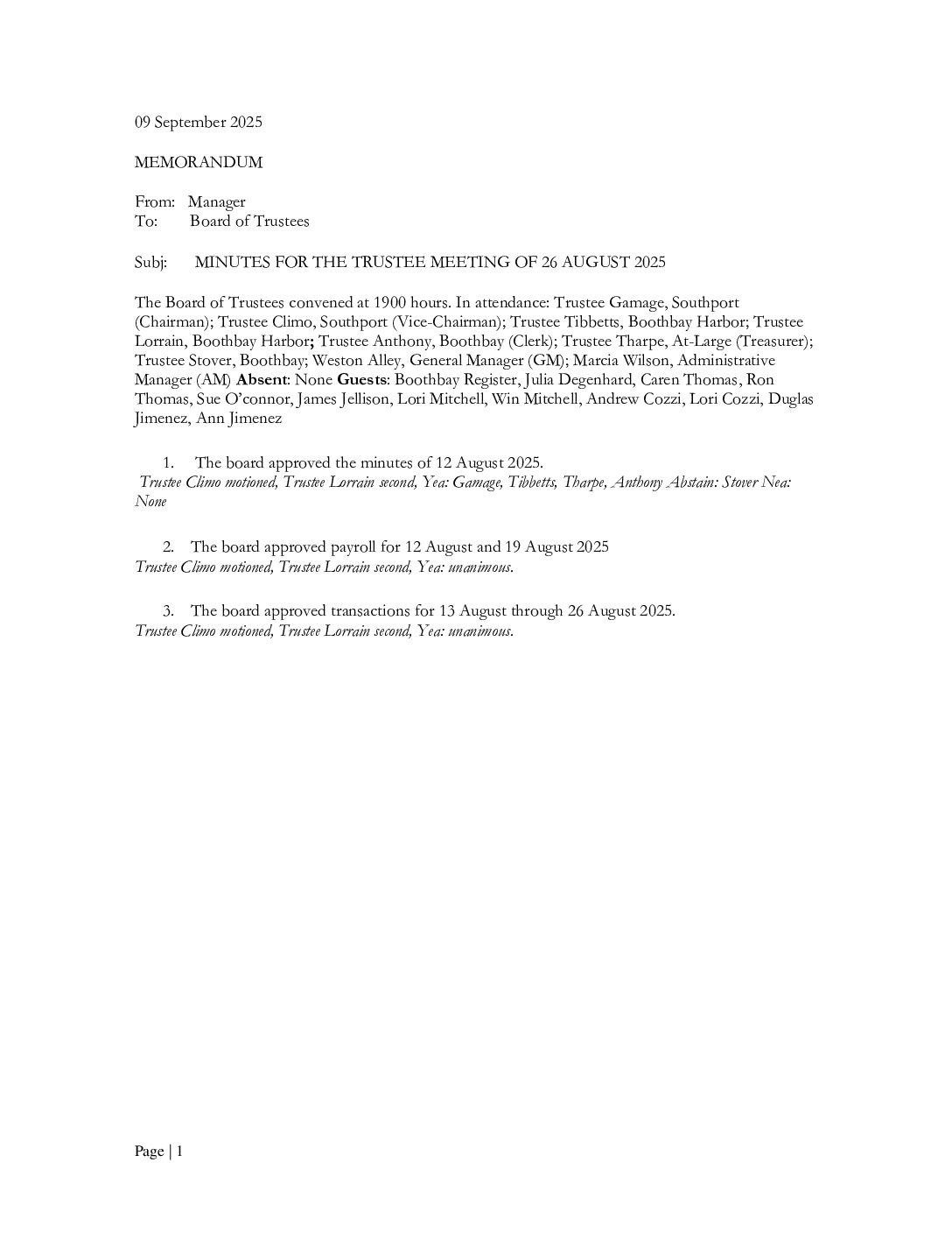 August 26th, 2025 — Meeting Minutes