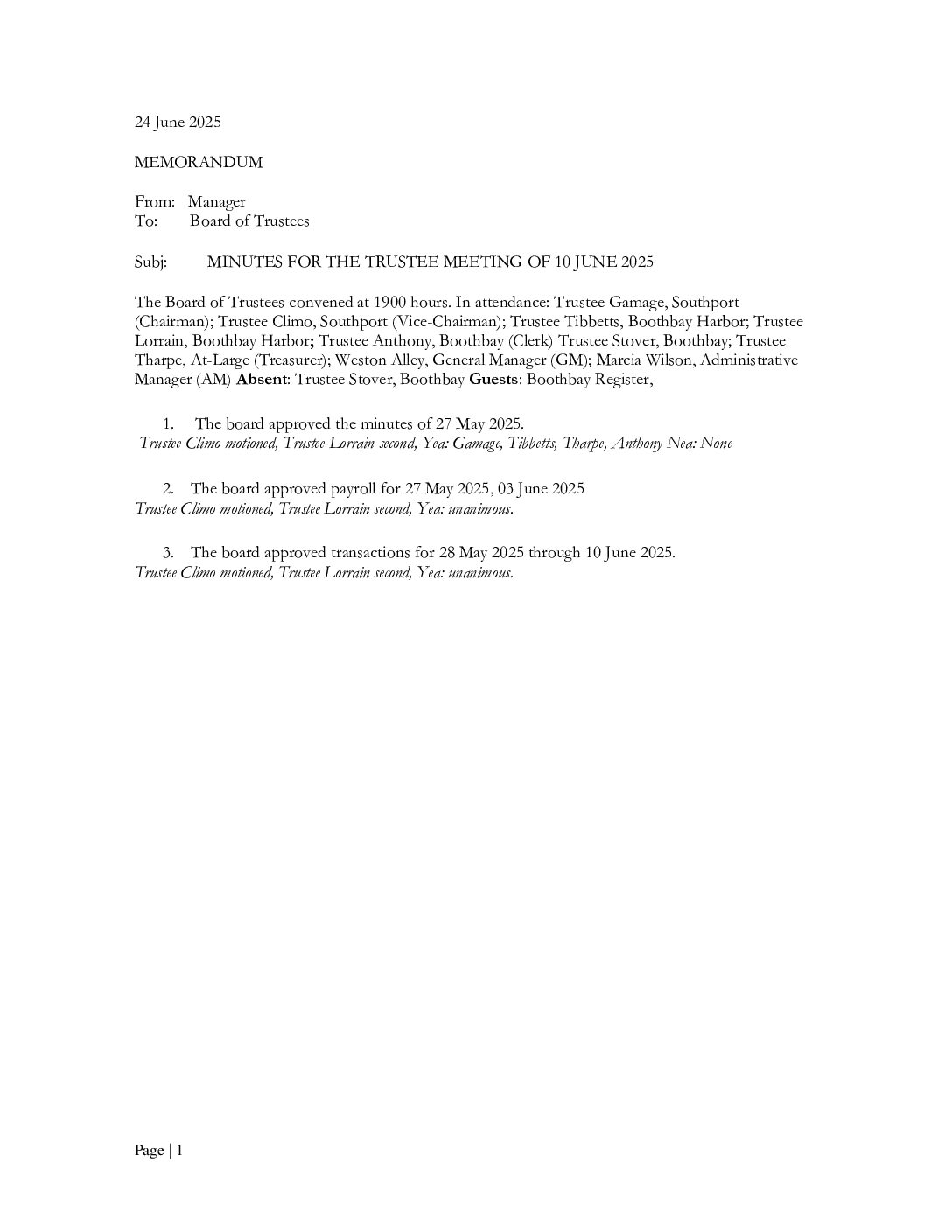 June 10th, 2025 — Meeting Minutes
