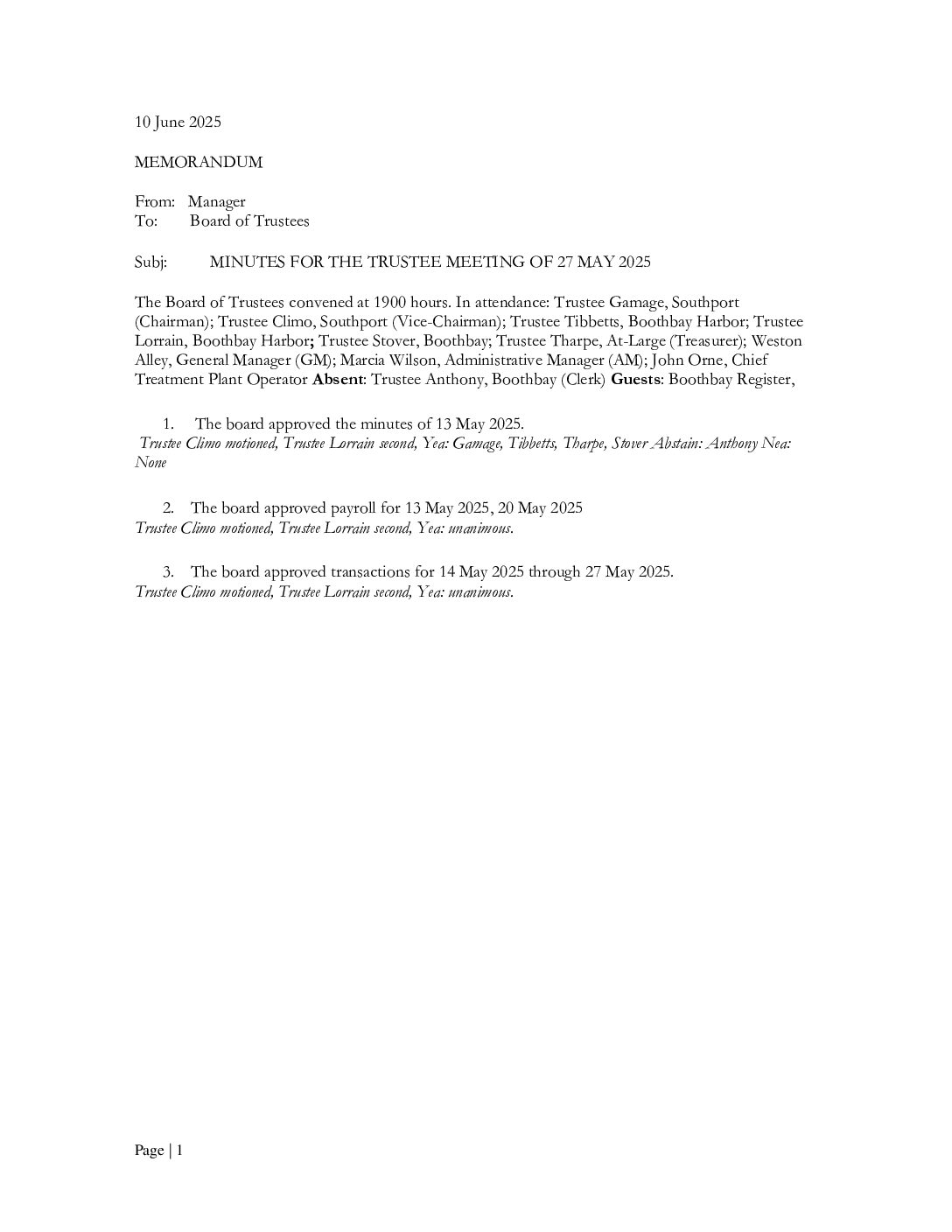 No promises regarding employment have been made to me and I understand that no such promise or guarantee is binding upon Boothbay Region Water District unless made in writing by the Manager, Boothbay Region Water District. If an employment relationship is established, I acknowledge that no consideration has been furnished to Boothbay Region Water District for my employment other than my services.