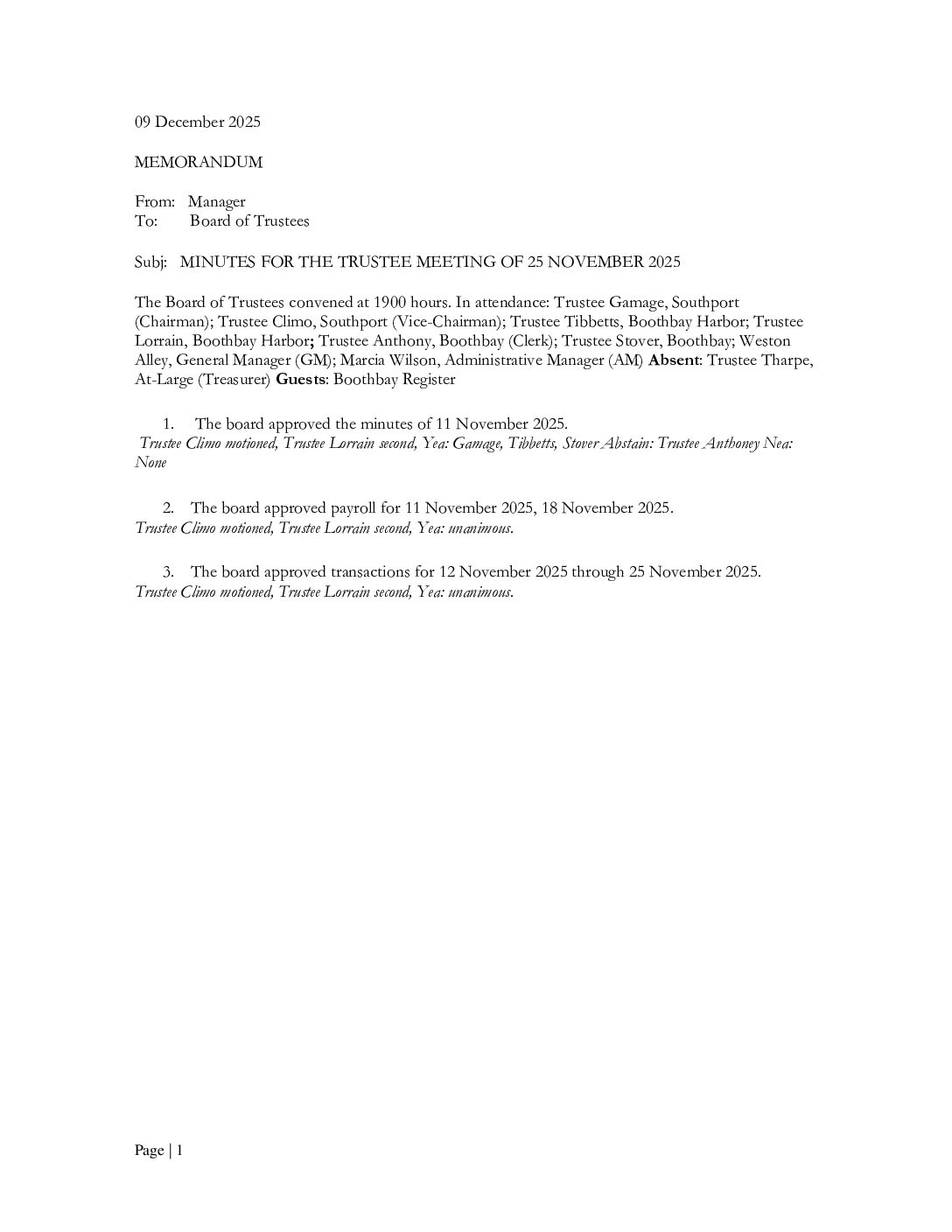 November 25th, 2025 — Meeting Minutes