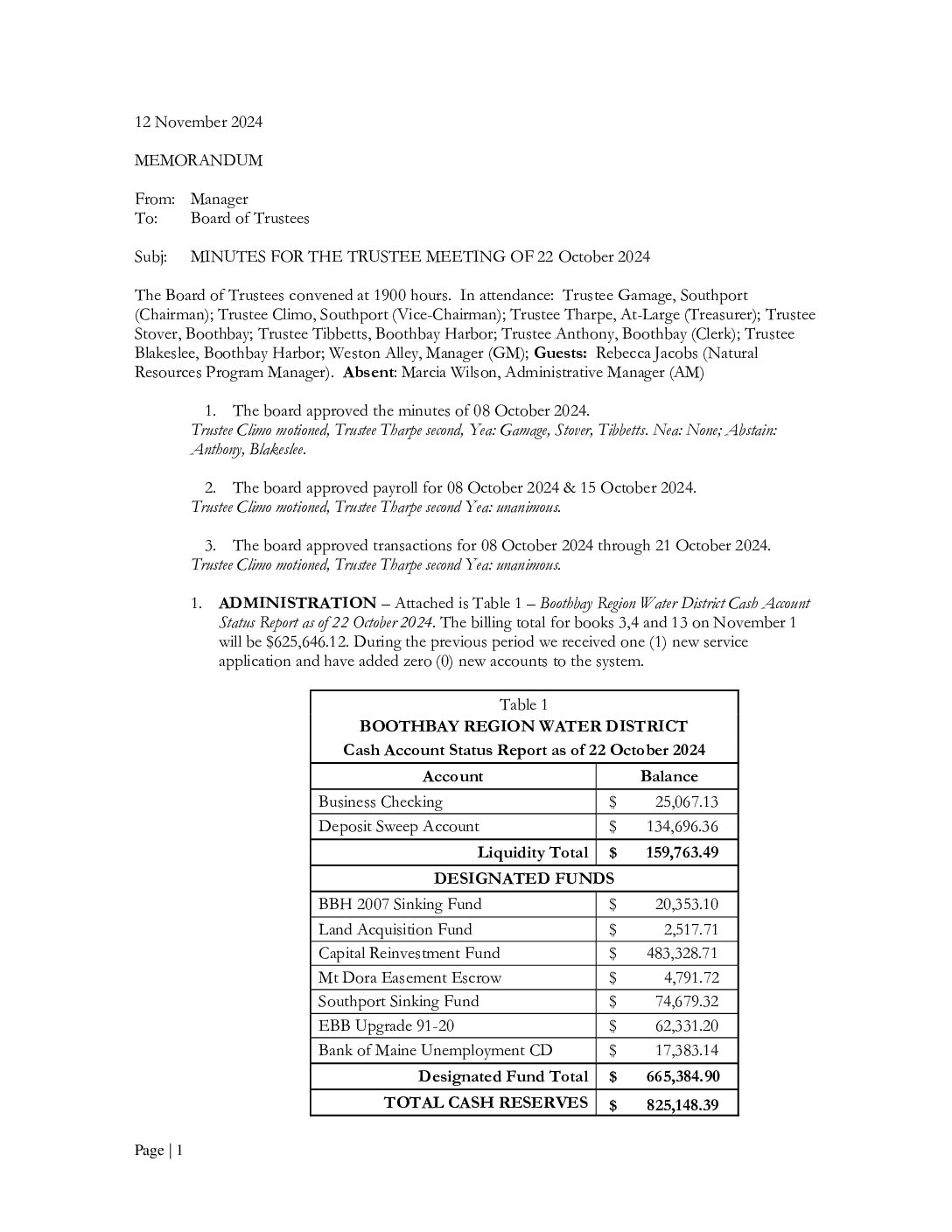 No promises regarding employment have been made to me and I understand that no such promise or guarantee is binding upon Boothbay Region Water District unless made in writing by the Manager, Boothbay Region Water District. If an employment relationship is established, I acknowledge that no consideration has been furnished to Boothbay Region Water District for my employment other than my services.